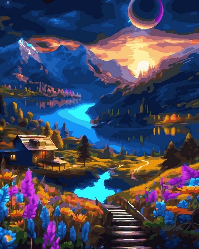 Paveikslas pas jus atvyks ant drobės, kuri jau aptraukta ant medinio rėmo ir smulkiai sunumeruotomis erdvėmis. Kiekvienas laukelis yra pažymėtas tam tikru skaičiumi, kuris atitinka numatytą spalvą. Jums reikia tik užpildyti skirtingas tuščias formas su nurodytomis spalvomis.